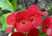 铁海棠为大戟科大戟属蔓生灌木植物;茎多分枝,具纵棱,呈旋转状;叶互生,通常集中于嫩枝上;每个花序基部边缘具微小的红色尖头;苞叶先端圆且具小尖头,无柄,上面鲜红色,下面淡红色;苞片丝状;子房光滑无毛,…全部>>