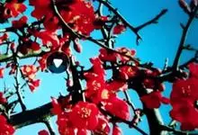 贴梗海棠 Nakai)是蔷薇科、木瓜海棠属植物。落叶灌木,高达2米,枝条直立开展,有刺。叶片卵形至椭圆形,稀长椭圆形,长3-9厘米,宽1.5-5厘米。花先叶开放,3-5朵簇生于二年生老枝上。…全部>>