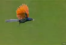 褐翅鸦鹃,是鹃形目鸦鹃科鸦鹃属的鸟类。褐翅鸦鹃的身体为黑色;头颈和胸带蓝紫色金属光泽并具黑亮的羽干纹,下胸至腹部泛金属绿光泽;两翼和肩部为棕栗色,外侧飞羽具暗色羽端,尾羽闪铜绿色光泽;虹膜赤红色,…全部>>