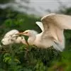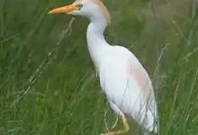 牛背鹭:体较肥胖,喙和颈较短粗。夏羽大都白色;头和颈橙黄色,前颈基部和背中央具羽枝分散成发状的橙黄色长形饰羽;前颈饰羽长达胸部,背部饰羽向后长达尾部,尾和其余体羽白色。冬羽通体全白色,个别头顶缀有黄色,…全部>>