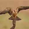 红隼:是隼科、隼属的小型猛禽之一。体重173-335克,体长305-360毫米。翅狭长而尖,尾亦较长,外形和共同爪隼非常相似。雄鸟头蓝灰色,背和翅上覆羽砖红色,具三角形黑斑;腰、尾上覆羽和尾羽蓝灰色,…全部>>