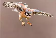红隼:是隼科、隼属的小型猛禽之一。体重173-335克,体长305-360毫米。翅狭长而尖,尾亦较长,外形和共同爪隼非常相似。雄鸟头蓝灰色,背和翅上覆羽砖红色,具三角形黑斑;腰、尾上覆羽和尾羽蓝灰色,…全部>>