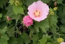 木芙蓉,锦葵科木槿属落叶灌木或小乔木。小枝上有细绒毛;叶片为卵状心形,托叶为披针形,常早落;花单生,花萼为钟形,花冠初为白色或淡红色,后逐渐变为深红色;果实为扁球形,有淡黄色的毛附着。花期8到10月。…全部>>