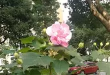 海滨木槿是锦葵科木槿属植物,落叶小乔木,株高3-5米,胸径20厘米,扁球形树冠,枝叶繁盛。厚纸质单叶互生,扁圆形、倒卵形或宽倒卵形,先端钝近平,具短突尖,基部圆形或浅心形,叶缘中上部具细圆齿,…全部>>