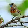 蓝点颏亦称“蓝喉歌鸲”,通称蓝靛颏儿。身体大小和麻雀相似,体长12-13厘米,体重17-18克。头部、上体主要为土褐色。眉纹白色。尾羽黑褐色,基部栗红色。颏部、喉部辉蓝色,下面有黑色横纹。下体白色。…全部>>