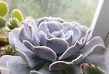 蓝石莲是景天科、拟石莲花属的多肉植物。茎部粗壮,成熟植株茎部木质化。叶片莲座型密集排列,株径不会很大,叶片相对较薄,常年绿色,表面布有白色粉末,中部凹陷,呈倒水滴状。叶尖较尖,叶缘光滑无褶皱,…全部>>