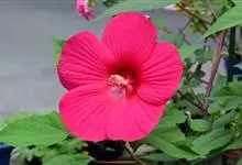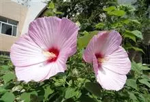 芙蓉葵是锦葵科木槿属植物,又名草芙蓉、大花秋葵,原产于北美。落叶灌木状。叶大、广卵形,叶柄、叶背密生灰色星状毛。花大,单生于叶腋,有白、粉、红、紫等色。喜阳、略耐阴,宜温暖湿润气候,忌干旱,耐水湿,…全部>>