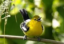 黑翅雀鹎:体重14-19克,体长11.5-16厘米。是树栖性绿色小鸟,外形与叶鹎相似,下体黄色。鸟喙直,翼长而尖,总体羽毛是绿色和黄色相结合,翼上具两道明显近白色横纹,翼近黑而羽缘白。…全部>>