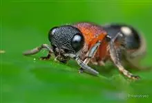 甘薯小象甲是鞘翅目蚁象科甘薯小象甲属昆虫,又称甘薯蚁象、甘薯象、番薯臭虫。成虫除触角、前胸、中胸、足为赤褐色外,鞘翅、腹部为暗蓝色,有金属光泽;体型细长,…全部>>