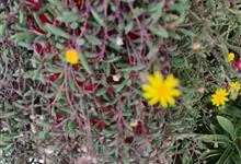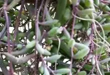 紫玄月是菊科厚敦菊属多年生肉质草本植物。蔓长30-60厘米;茎紫色;叶对生或互生茎上肉质,叶片细圆柱形,中间粗两端细稍弯曲;花序着生于叶腋,头状花序,舌状花黄色,管状花黄色;花期全年。…全部>>