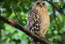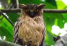 褐渔鸮,是鸱鸮科、渔鸮属的鸟类。褐渔鸮为大型鸮类,体长51-55厘米,外形和毛脚鱼鸮相似,但较棕褐色,上体有粗著黑色斑纹,下体黄白色或浅暗黄色,有粗著的黑色条纹和细的波状横斑,喉有大的白色块斑,…全部>>