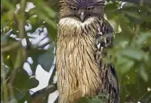 褐渔鸮,是鸱鸮科、渔鸮属的鸟类。褐渔鸮为大型鸮类,体长51-55厘米,外形和毛脚鱼鸮相似,但较棕褐色,上体有粗著黑色斑纹,下体黄白色或浅暗黄色,有粗著的黑色条纹和细的波状横斑,喉有大的白色块斑,…全部>>