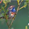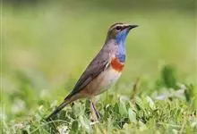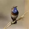 蓝点颏亦称“蓝喉歌鸲”,通称蓝靛颏儿。身体大小和麻雀相似,体长12-13厘米,体重17-18克。头部、上体主要为土褐色。眉纹白色。尾羽黑褐色,基部栗红色。颏部、喉部辉蓝色,下面有黑色横纹。下体白色。…全部>>