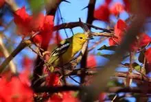 黑翅雀鹎:体重14-19克,体长11.5-16厘米。是树栖性绿色小鸟,外形与叶鹎相似,下体黄色。鸟喙直,翼长而尖,总体羽毛是绿色和黄色相结合,翼上具两道明显近白色横纹,翼近黑而羽缘白。…全部>>