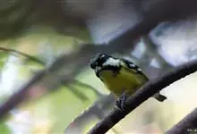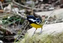 黄腹山雀是雀形目山雀科山雀属鸟类。虹膜褐色或暗褐色;嘴蓝黑色或灰蓝黑色;头、喉胸斑黑色,颊斑、颈后斑白色;上体蓝灰色,腰银白色;翼具两排白色点斑;下胸、腹鲜黄色;尾黑色,…全部>>