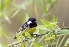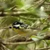 黄腹山雀是雀形目山雀科山雀属鸟类。虹膜褐色或暗褐色;嘴蓝黑色或灰蓝黑色;头、喉胸斑黑色,颊斑、颈后斑白色;上体蓝灰色,腰银白色;翼具两排白色点斑;下胸、腹鲜黄色;尾黑色,…全部>>