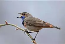 蓝点颏亦称“蓝喉歌鸲”,通称蓝靛颏儿。身体大小和麻雀相似,体长12-13厘米,体重17-18克。头部、上体主要为土褐色。眉纹白色。尾羽黑褐色,基部栗红色。颏部、喉部辉蓝色,下面有黑色横纹。下体白色。…全部>>