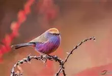 花彩雀莺:体长9-12厘米,是一种毛茸茸偏紫色的雀莺。顶冠棕色,眉纹白。尾长,羽毛松软。前额有一宽阔的眉纹淡黄色,头顶栗色或棕红色,有的具紫蓝色光泽。背灰色,腰和尾上覆羽辉紫蓝色,飞羽灰褐色。…全部>>