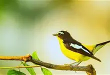 白眉姬鹟是小型鸟类,体长11-14厘米。雄鸟上体大部黑色,眉纹白色,在黑色的头上极为醒目。腰鲜黄色,两翅和尾黑色,翅上具白斑。下体鲜黄色。雌鸟上体大部橄榄绿色。腰鲜黄色,翅上亦具白斑。下体淡黄绿色。…全部>>