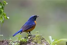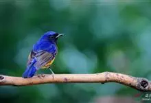 棕腹大仙鹟:体重24-28克,体长15-17厘米,是一种小型的色彩亮丽的鹟。雄鸟上体深蓝,下体棕色,脸黑,额、颈侧小块斑、翼角及腰部亮丽闪辉蓝色。与棕腹仙鹟易混淆,区别在色彩较暗。雌鸟灰褐,…全部>>