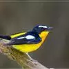 白眉姬鹟是小型鸟类,体长11-14厘米。雄鸟上体大部黑色,眉纹白色,在黑色的头上极为醒目。腰鲜黄色,两翅和尾黑色,翅上具白斑。下体鲜黄色。雌鸟上体大部橄榄绿色。腰鲜黄色,翅上亦具白斑。下体淡黄绿色。…全部>>
