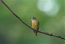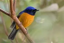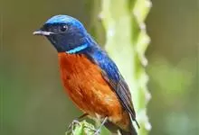 棕腹大仙鹟:体重24-28克,体长15-17厘米,是一种小型的色彩亮丽的鹟。雄鸟上体深蓝,下体棕色,脸黑,额、颈侧小块斑、翼角及腰部亮丽闪辉蓝色。与棕腹仙鹟易混淆,区别在色彩较暗。雌鸟灰褐,…全部>>