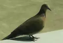 珠颈斑鸠,别名花斑鸠、珍珠鸠、花脖斑鸠、鸪鹪,是鸠鸽科副斑鸠属鸟类。体型中等,体长27~34cm,体重120~205g,雌鸟和雄鸟羽色相似,但雌鸟不如雄鸟羽色亮泽。珠颈斑鸠前额至头顶羽色稍淡,…全部>>