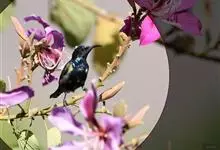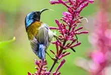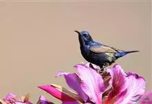 紫色蜜鸟为太阳鸟科花蜜鸟属的鸟类。分布于阿拉伯、伊朗、阿富汗、印度、尼泊尔、锡金、孟加拉、中南半岛、斯里兰卡以及中国大陆的云南等地,多栖息于海拔约950米以下的常绿阔叶林或村寨附近的丛林间。…全部>>