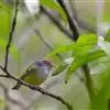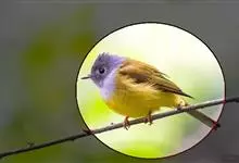 黑脸鹟莺:体长10厘米,是有特色的体小而多彩的莺鸟。粗眉纹,颏、喉及尾下覆羽黄色,脸罩黑,头顶及颈背灰色,上体绿,无翼纹,腹白。虹膜褐色;上嘴色深,下嘴肉色;脚偏绿色。…全部>>