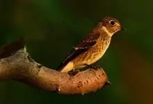 棕尾褐鹟:体重9-16克;体长109-122毫米,是一种体型略小的红褐色鹟。眼圈皮黄,喉块白,头石板灰色,背褐,腰棕色,下体白,胸具褐色横斑,两胁及尾下覆羽棕色。通常具白色的半颈环。…全部>>