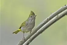 白腹凤鹛是绿鹃科、绿凤鹛属的小型鸟类,体长10-12厘米。上体从头到尾黄绿色,有短的羽冠,头顶微具黑色羽轴纹;眼先、眼周,耳羽和下体灰白色,尾下覆羽黄色。虹膜褐色或红褐色,上嘴浅褐色或肉褐色,…全部>>