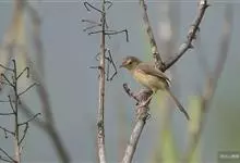 黄腹鹪莺:体长13厘米,是一种体型略大而尾长的橄榄绿色鹪莺。喉及胸白色,以下胸及腹部黄色为其特征。头灰,有时具浅淡近白的短眉纹;上体橄榄绿色;腿部皮黄或棕色。换羽导致羽色有异。繁殖期尾较短,…全部>>
