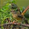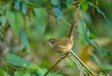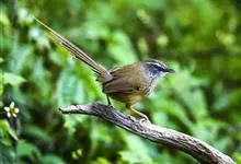 黑喉山鹪莺:体长16厘米,是一种长尾的褐色鹪莺。具明显的白色眉纹及形长的尾。特征为胸具黑色纵纹。上体褐色,两胁黄褐,腹部皮黄;脸颊灰,具明显的白色眉纹及形长的尾。无下髭纹,下体少黑色。虹膜浅褐色,…全部>>