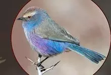 凤头雀莺:小型鸟类。体长9-10厘米,雄鸟呈毛茸茸的紫色和绛紫色,顶冠淡紫灰色,额及凤头白色,尾全蓝。雌鸟喉及上胸白,至臀部渐变成淡紫色,耳羽灰,…全部>>