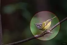 白腹凤鹛是绿鹃科、绿凤鹛属的小型鸟类,体长10-12厘米。上体从头到尾黄绿色,有短的羽冠,头顶微具黑色羽轴纹;眼先、眼周,耳羽和下体灰白色,尾下覆羽黄色。虹膜褐色或红褐色,上嘴浅褐色或肉褐色,…全部>>