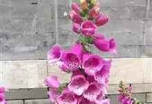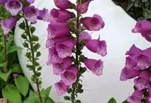 毛地黄是车前科、毛地黄属一年生或多年生草本植物。株高0.5—1米,茎直立,少分枝,全株被灰白色短柔毛和腺毛叶基生,呈莲座状,卵圆形或卵状披针形。顶生总状花序,花冠钟状,紫红色,内面有浅白斑点。菊果卵形。…全部>>