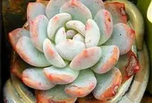 芙蓉雪莲是景天科拟石莲花属的植物。由于叶片表面覆盖着一层厚霜粉,通常呈现出白色;日照增多,温差增大后叶缘、叶尖会呈现出粉红色或橙红色。…全部>>