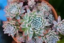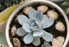 蓝石莲是景天科、拟石莲花属的多肉植物。茎部粗壮,成熟植株茎部木质化。叶片莲座型密集排列,株径不会很大,叶片相对较薄,常年绿色,表面布有白色粉末,中部凹陷,呈倒水滴状。叶尖较尖,叶缘光滑无褶皱,…全部>>