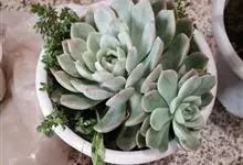芙蓉雪莲是景天科拟石莲花属的植物。由于叶片表面覆盖着一层厚霜粉,通常呈现出白色;日照增多,温差增大后叶缘、叶尖会呈现出粉红色或橙红色。…全部>>