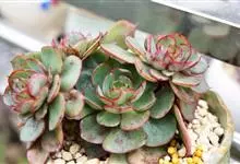 红稚莲是景天科石莲花属的多肉植物。叶片长匙形,先端稍尖,叶面光滑无粉,叶背有凸起的龙骨,叶片翠绿色或深绿色,光照充足、温差加大后,叶尖和叶片上端会变成紫红色,叶片也会变成淡绿中泛白的颜色。…全部>>