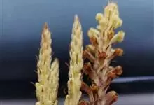 黄花列当是列当科、列当属植物。二年生或多年生草本,株高10-40厘米,全株密被腺毛。茎不分枝,直立,基部稍膨大。叶卵状披针形或披针形,干后黄褐色。花序穗状,圆柱形,长8-20厘米,顶端锥状,…全部>>