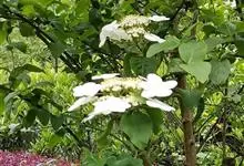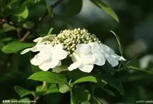 蝴蝶戏珠花 Miq.)是荚蒾科荚蒾属植物。落叶灌木,高达3米;当年小枝浅黄褐色。叶较狭,宽卵形或矩圆状卵形,有时椭圆状倒卵形。花序直径4-10厘米,外围有4-6朵白色、木型的不孕花。果实先红色后变黑色,…全部>>