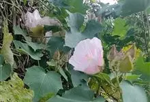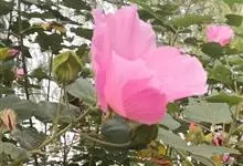 木芙蓉,锦葵科木槿属落叶灌木或小乔木。小枝上有细绒毛;叶片为卵状心形,托叶为披针形,常早落;花单生,花萼为钟形,花冠初为白色或淡红色,后逐渐变为深红色;果实为扁球形,有淡黄色的毛附着。花期8到10月。…全部>>