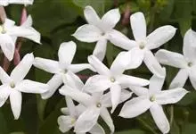 素馨花,木犀科素馨属多年生的攀援灌木植物。攀援灌木,小枝圆柱形,具棱或沟;叶对生,叶轴常具窄翼,小叶片卵形或长卵形;聚伞花序顶生或腋生,花序梗长,苞片线形,花萼无毛,裂片锥状线形,花冠白色,…全部>>