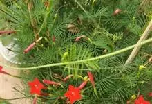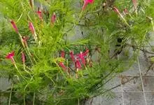 茑萝是旋花科番薯属属一年生柔弱缠绕草本植物。叶卵形或长圆形,羽状深裂至中脉,基部常具假托叶;花序腋生,由少数花组成聚伞花序,花直立,花柄较花萼长,在果时增厚成棒状;萼片绿色,椭圆形至长圆状匙形,…全部>>