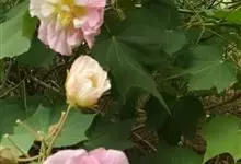 木芙蓉,锦葵科木槿属落叶灌木或小乔木。小枝上有细绒毛;叶片为卵状心形,托叶为披针形,常早落;花单生,花萼为钟形,花冠初为白色或淡红色,后逐渐变为深红色;果实为扁球形,有淡黄色的毛附着。花期8到10月。…全部>>