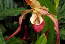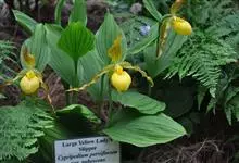 黄花杓兰:植株通常高30-50厘米,具粗短的根状茎。茎直立,密被短柔毛,基部具数枚鞘,鞘上方具3-6枚叶。叶片椭圆形至椭圆状披针形。花序顶生,通常具1花,罕有2花;花黄色,有时有红色晕,…全部>>