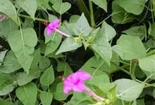 即紫茉莉,英文名:Four-o'clock,Marvel of Peru,为紫茉莉科、紫茉莉属多年生草本植物,一年生栽培。株高50~80cm。根粗壮,茎多分枝而散生。叶对生,卵形或心脏形。花数朵簇生…全部>>