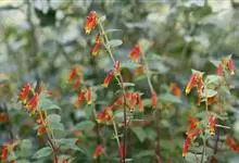 细叶萼距花 小灌木,分枝多而铺散,长30-40厘米。叶对生,卵状披针形,长3-4厘米。花单生于叶腋,筒状花的花萼基部一侧膨大成距状,鲜红色,口部白色。全部>>