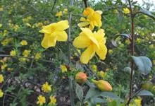 迎春花,木犀科素馨属的多年生木本植物,小枝细长直立或者呈拱形下垂;叶片呈卵形或椭圆形;花单生于叶腋处,苞片呈披针形或椭圆形,花冠为金黄色,花瓣通常为倒卵形或椭圆形;花期在6月。…全部>>